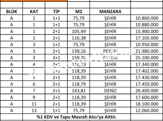 1 + 1 daireler 75 m²